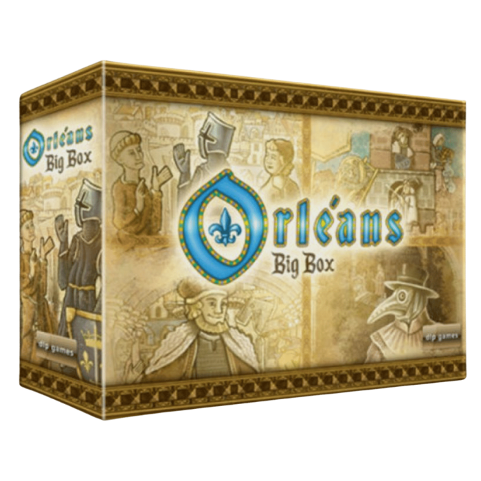Orléans: Big Box — first released as Orléans: Anniversary Box — collects all released materials as of 2025 for Orléans, a game set in the French city of the same name during medieval times in which you must assemble a following of farmers, merchants, knights, monks, etc to gain supremacy through trade, construction and science in medieval France.