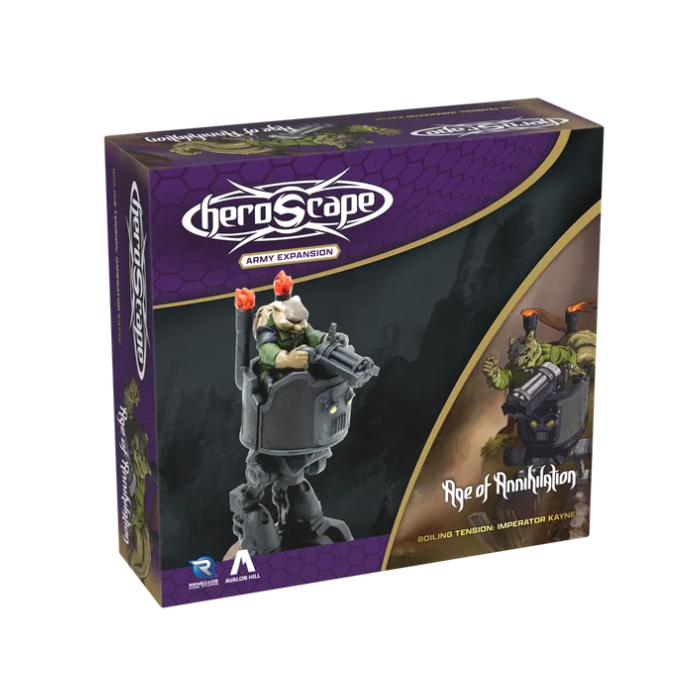 Build your army and make Imperator Kayne the centerpiece of your Volarak faction forces! Kayne thrives in the chaos of combat, targeting enemies on uneven terrain with his devastating stomping power. His ability to punish foes whose level is no more than 5 levels above his makes him a versatile threat across the battlefield. Perfect for players who love high-impact, dynamic gameplay. This expansion contains 1 highly detailed miniature! It is fully compatible with all Heroscape Master Sets and Expansions.