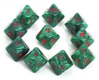 Ankh d10 Set (Green marble w/ red #s, 10 dice/set)