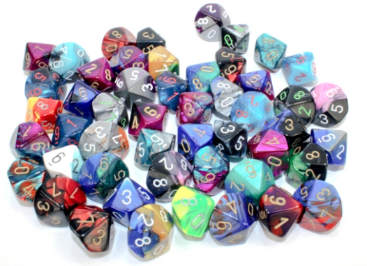 Bag of 50 Assorted Loose Gemini Polyhedral d10 Dice