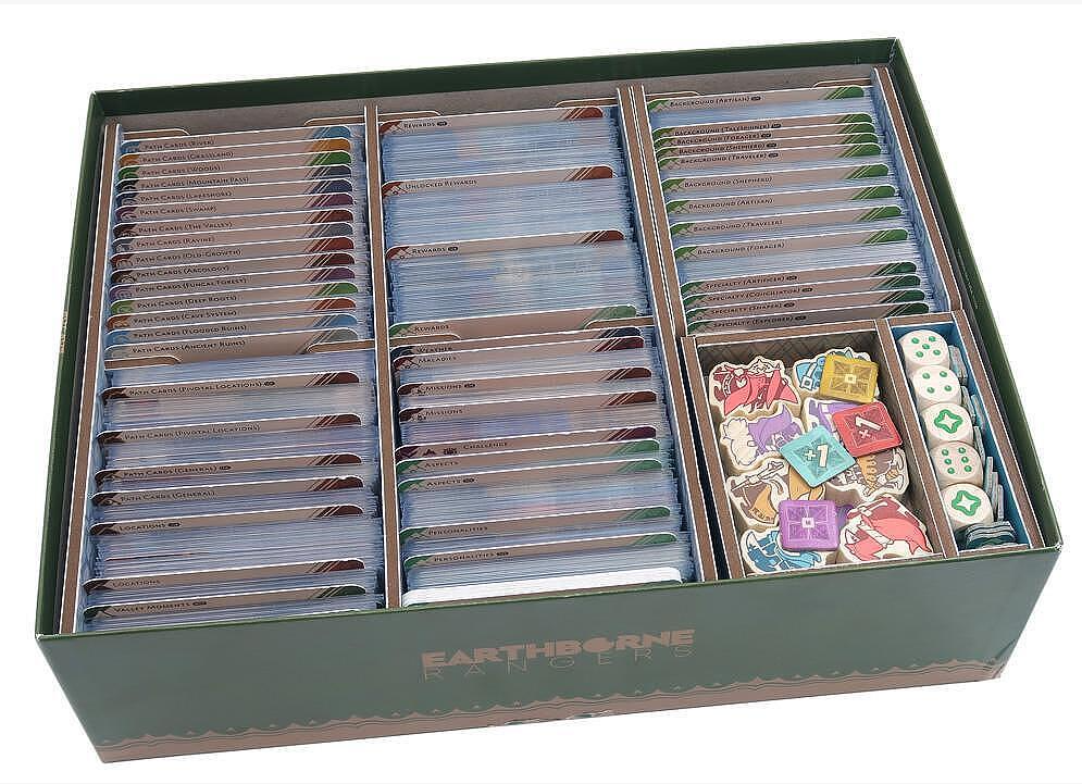 Full colour insert compatible with Earthborne Rangers®, including space for Legacy of the Ancestors®, Stewards of the Valley® and Moments on the Path® expansions.