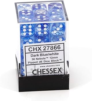 Nebula 12mm d6 Dark Blue/white Dice Block (36 dice)