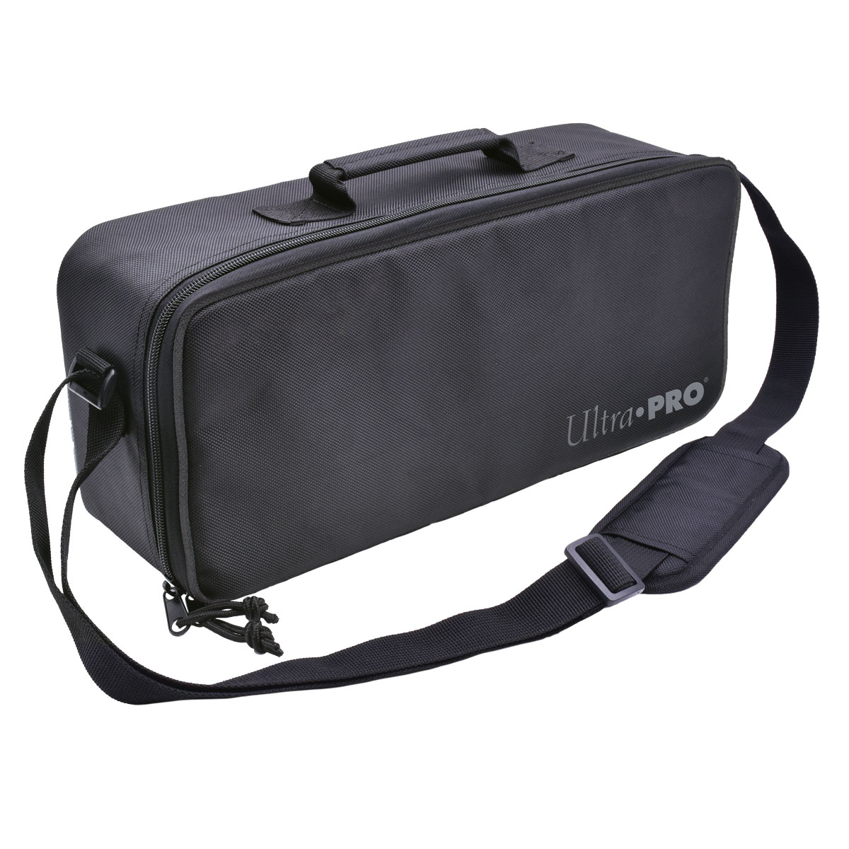Finally, a smaller, more compact bag for all your treasures! Our Deluxe Gaming Trove features a heavy duty fabric shell with 5 modular inserts to allow for custom storage options. The 15" horizontal design is ideal for holding playmats as well! An adjustable padded shoulder strap extends up to 60" in length, with a top handle for easy carrying. Heavy duty fabric shell Modular design with (5) interior removable inserts for customizable storage Store different combinations of Ultra PRO accessories and deck boxes 15" horizontal design to hold playmats or multiple Ultra PRO Deck Boxes Adjustable, padded shoulder strap extends to 60" in length with a briefcase handle option