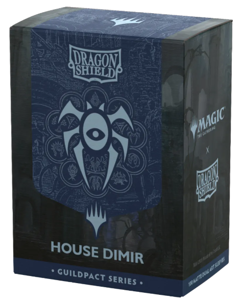 “Dangerous to recognize. Deadly not to.” Lurk in the shadows with your fellow spies and assassins of House Dimir. Show your guild allegiance with the Magic x Dragon Shield House Dimir Matte Dual Art Sleeves.