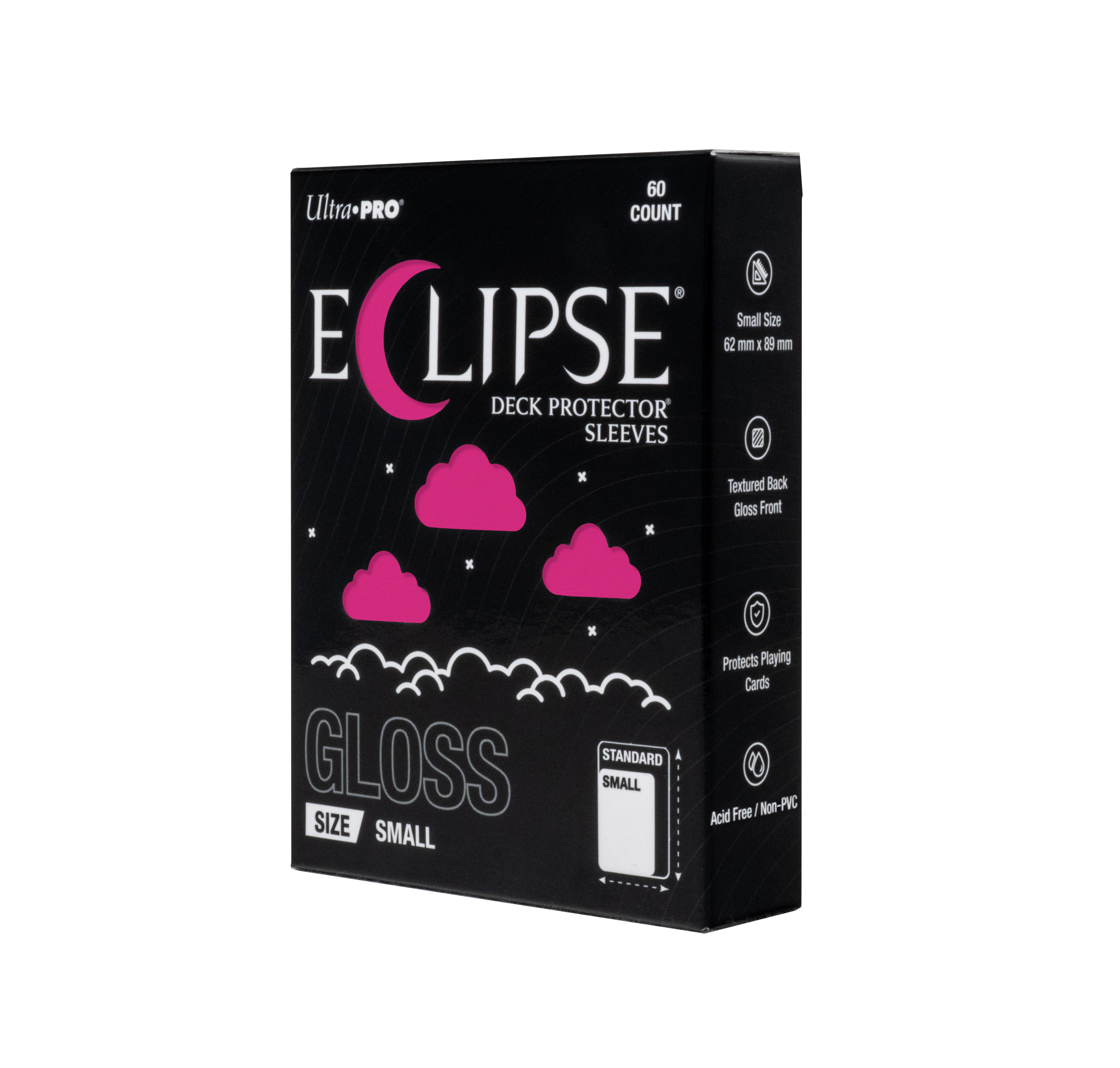 The next evolution of Ultra PRO's legendary ECLIPSE® DECK PROTECTOR® sleeves is here. Experience the enhanced texture, optimized shuffle feel, and the rigorously tested, consistent quality of the latest ECLIPSE® formulation. Designed for competitive play and archival collections, ECLIPSE® DECK PROTECTOR® sleeves feature fullyopaque backings and splitresistant seals. ECLIPSE® DECK PROTECTOR® sleeves are available in matte and gloss fronts, standard and small sizes, and 10 vibrant colors.
