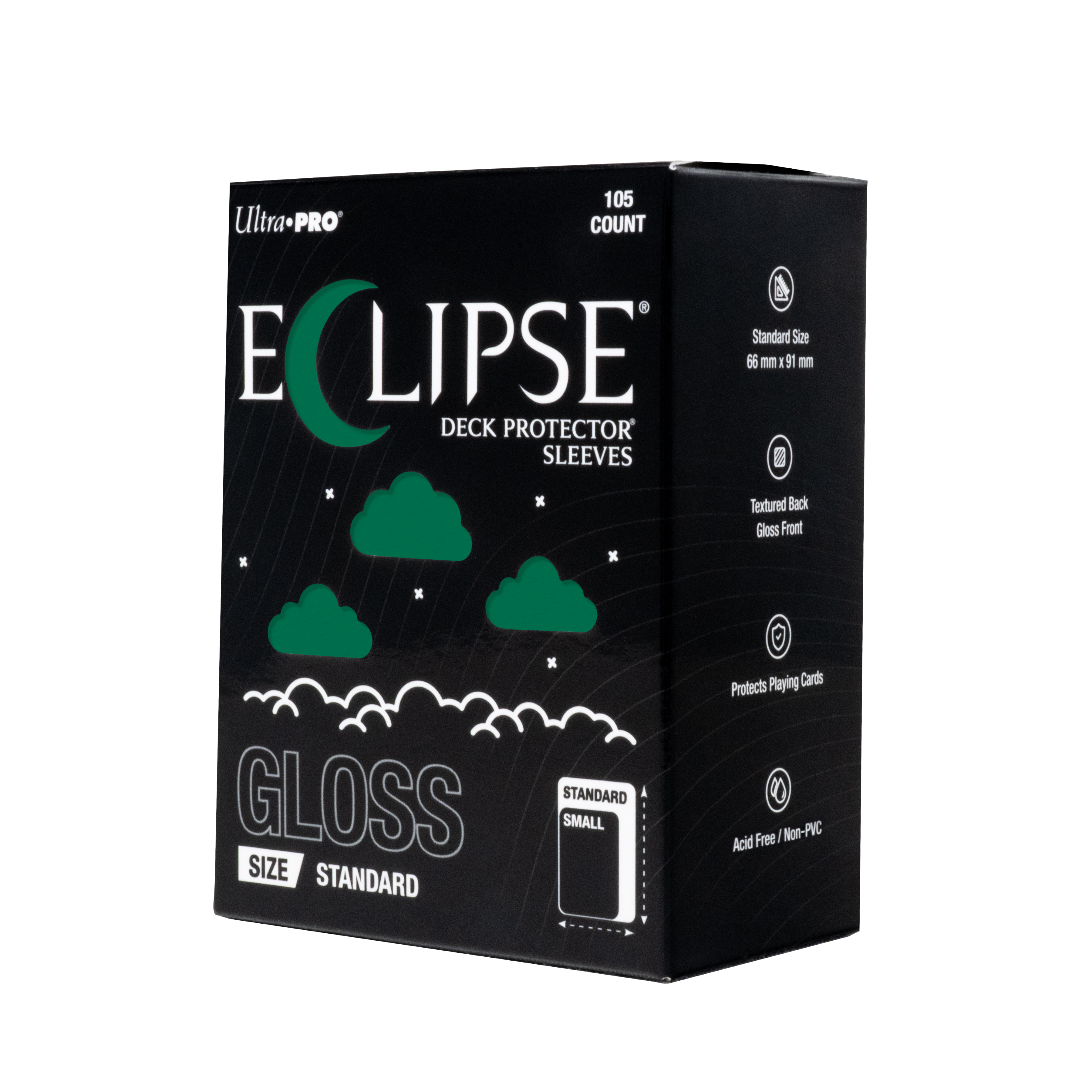 The next evolution of Ultra PRO's legendary ECLIPSE® DECK PROTECTOR® sleeves is here. Experience the enhanced texture, optimized shuffle feel, and the rigorously tested, consistent quality of the latest ECLIPSE® formulation. Designed for competitive play and archival collections, ECLIPSE® DECK PROTECTOR® sleeves feature fullyopaque backings and splitresistant seals. ECLIPSE® DECK PROTECTOR® sleeves are available in matte and gloss fronts, standard and small sizes, and 10 vibrant colors.