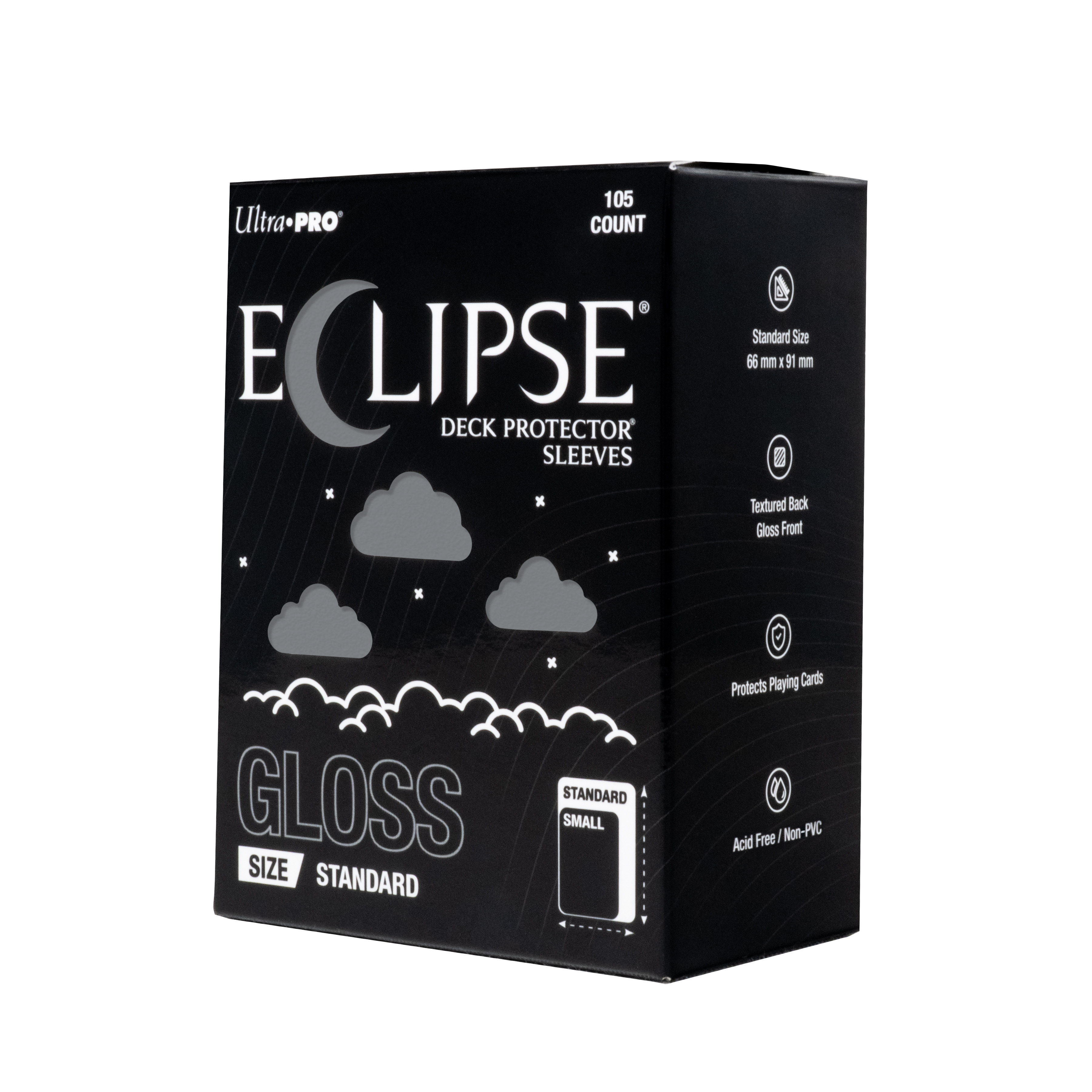 The next evolution of Ultra PRO's legendary ECLIPSE® DECK PROTECTOR® sleeves is here. Experience the enhanced texture, optimized shuffle feel, and the rigorously tested, consistent quality of the latest ECLIPSE® formulation. Designed for competitive play and archival collections, ECLIPSE® DECK PROTECTOR® sleeves feature fullyopaque backings and splitresistant seals. ECLIPSE® DECK PROTECTOR® sleeves are available in matte and gloss fronts, standard and small sizes, and 10 vibrant colors.
