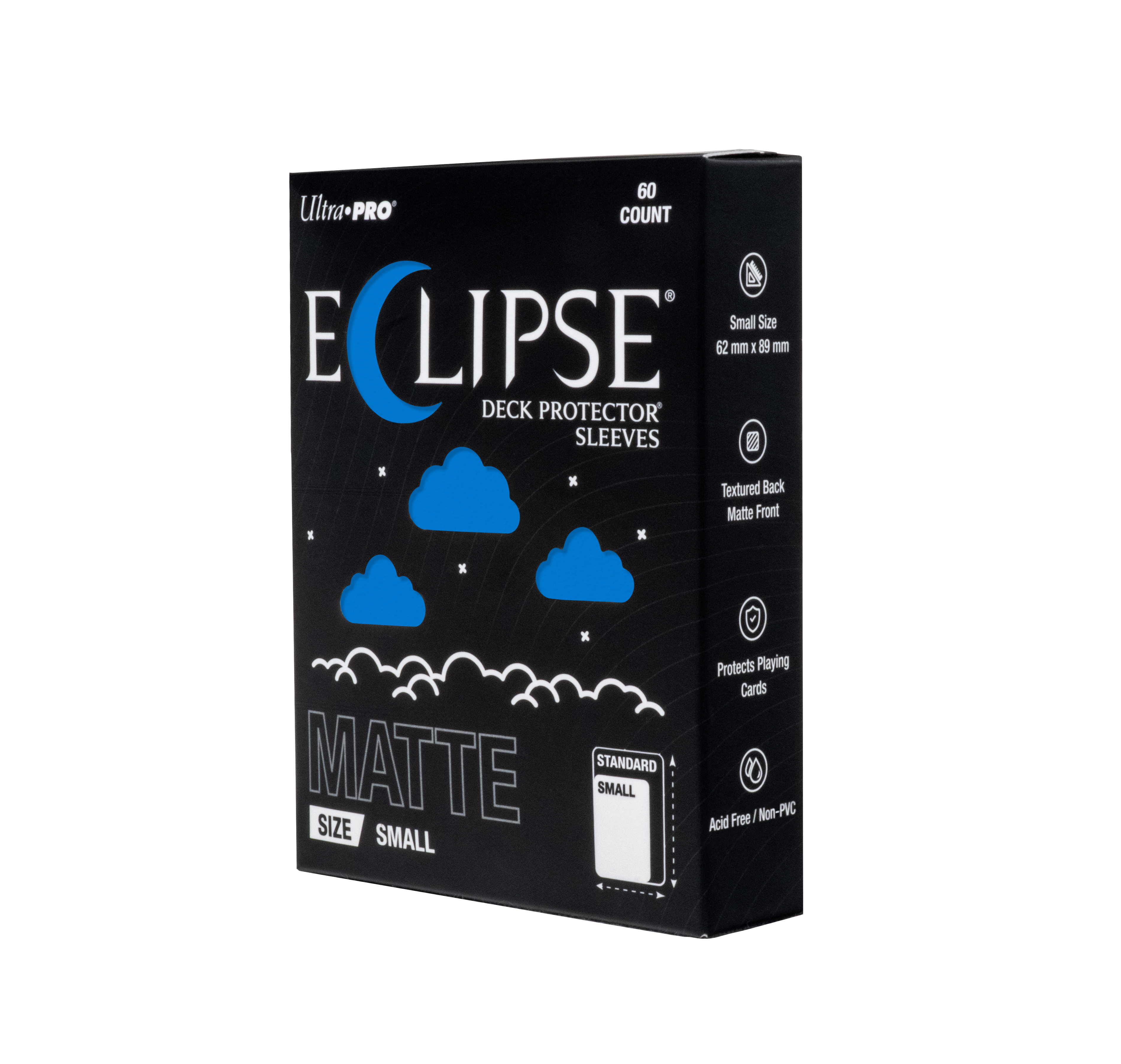 The next evolution of Ultra PRO's legendary ECLIPSE® DECK PROTECTOR® sleeves is here. Experience the enhanced texture, optimized shuffle feel, and the rigorously tested, consistent quality of the latest ECLIPSE® formulation. Designed for competitive play and archival collections, ECLIPSE® DECK PROTECTOR® sleeves feature fullyopaque backings and splitresistant seals. ECLIPSE® DECK PROTECTOR® sleeves are available in matte and gloss fronts, standard and small sizes, and 10 vibrant colors.