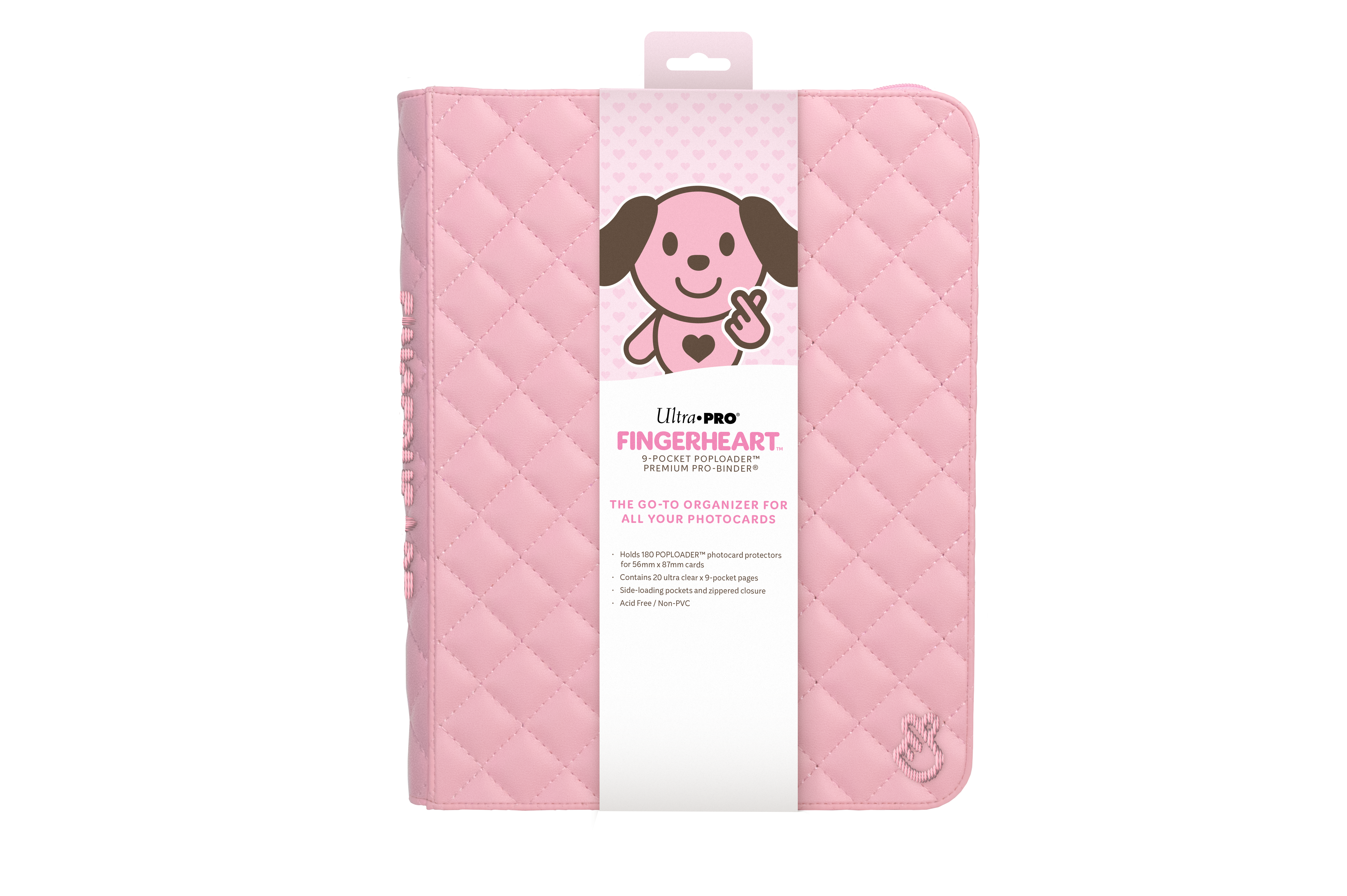 The FINGERHEART™ Blush 9-Pocket POPLOADER™ Premium PRO-BINDER® is your go-to organizer for all of your album photocards in one sleek, secure package. With 20 ultra clear, archival-safe pages and 9 side-loading pockets, your perfectly curated collection stays safe and ready to showcase. A padded, stitched cover with a matching zipper and pull tab keeps your collection secure, whether you're storing it at home or bringing it along to your next fan event. From debut era to latest comeback, this PRO-BINDER® is made to preserve every moment you cherish.