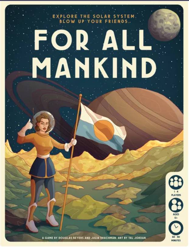 For All Mankind is a fast-paced game of strategic exploration, clever trades, and diplomatic shenanigans. Build your empire across the ever-changing solar system. (Careful, the planets move!) Gather, trade, and invest your resources — and do whatever it takes to stay ahead of the competition.