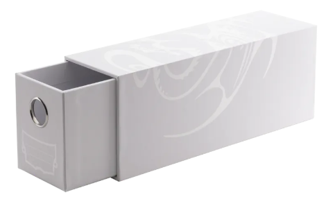 Fortress Card Drawer’s outside measures 86×109×283mm and the drawer has an inner dimension of 71x96x274mm. Fortress is made of rigid cardboard and coated with a scratch-minimizing surface.