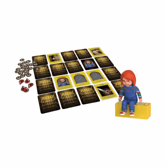 ⚠️ Watch out, because Chucky has escaped! You and your friends are trapped inside an abandoned toy store, and Chucky is hunting you down. Work together and find weapons to defeat him. But beware: if you run into Chucky, he will attack you. If Chucky attacks you twice, his soul will transfer into your body, and everyone loses the game. If you manage to successfully attack the Enraged Chucky card, you all win the game together!