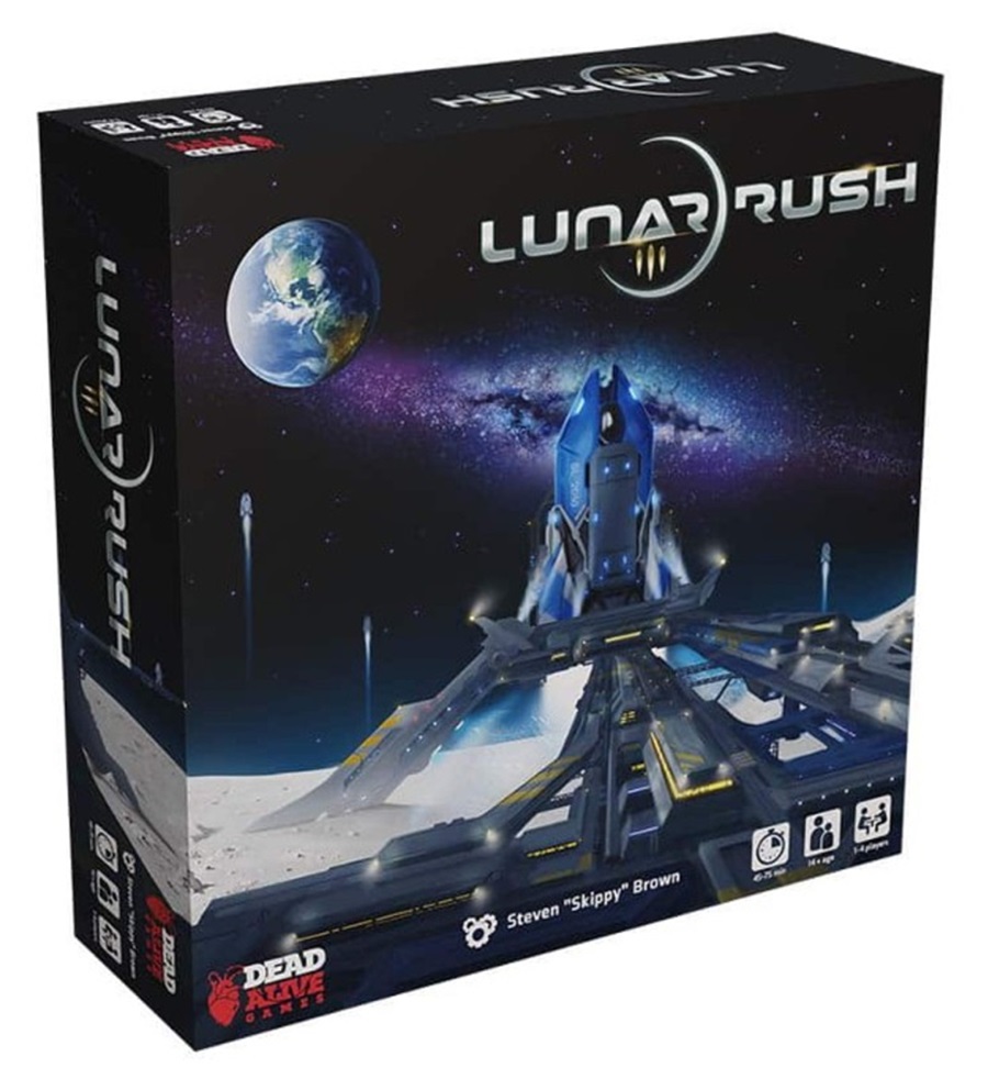 Lunar Rush is a simultaneous-play Euro-style board game that combines time-based resource management, market economics, bidding, and tableau/engine-building into a refreshing new genre. You play as one of Earth’s four major corporate conglomerates, competing to mine the Moon for the newly-discovered “wonder materials”, lunethyst crystals and lunarium ore.