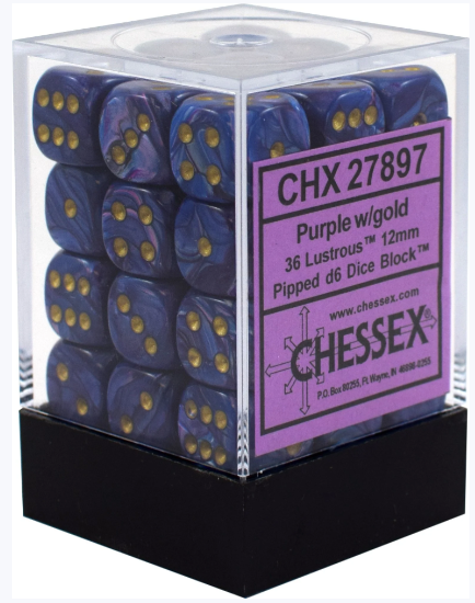 Lustrous® 12mm d6 Purple/gold Dice Block™ (36 dice)