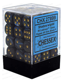 Lustrous® 12mm d6 Shadow/gold Dice Block™ (36 dice)