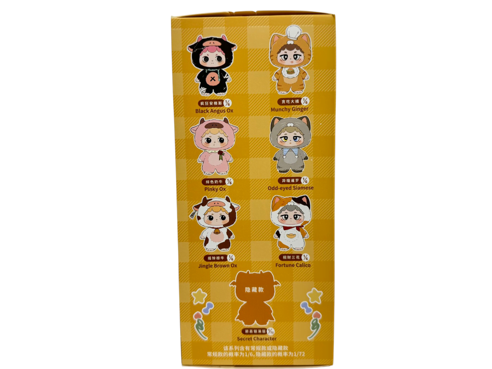 This box contains random or hidden Miiloo plush dolls.All rights reserved,anti-counterfeiting is strictly prohibited.This series contains 6regular models + 1hidden model, with aregular probability of1:6 and a hidden probability of 1:72.