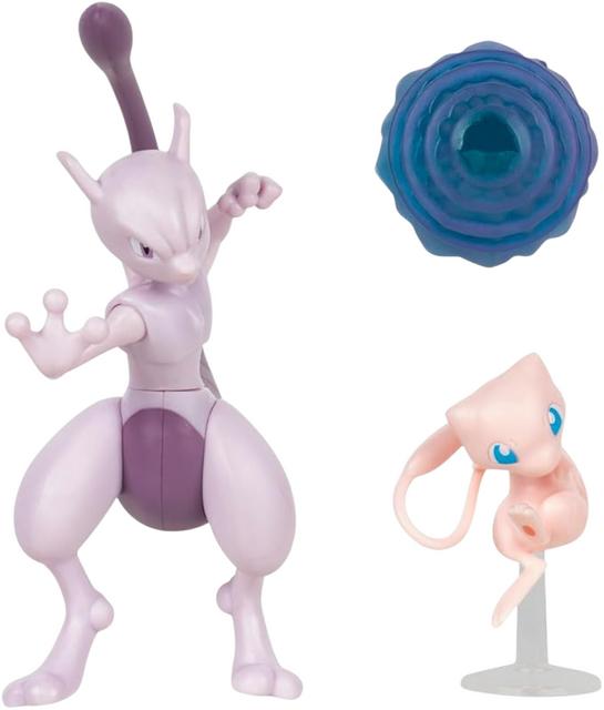 A compact and collectible set of Pokémon figures featuring two iconic Psychic‑type Pokémon: Mew and Mewtwo. These officially licensed Pokémon Battle Figures are designed for both play and display, bringing fan‑favorite characters from the Pokémon universe into physical form with vibrant detail and sturdy construction.