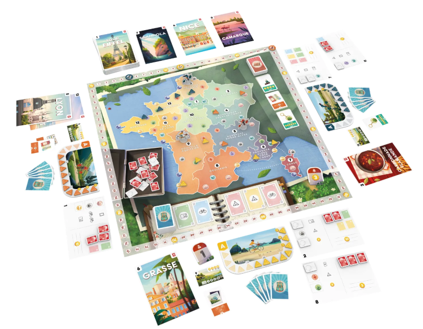 Hop on your bicycle and set out on a picturesque adventure, as you compete with your friends to enjoy the most unforgettable holiday! Designed for 1-4 players, Postcards is a family friendly game that takes you on a journey across France, filled with inspiring culture, stunning landscapes, and delicious local cuisine.