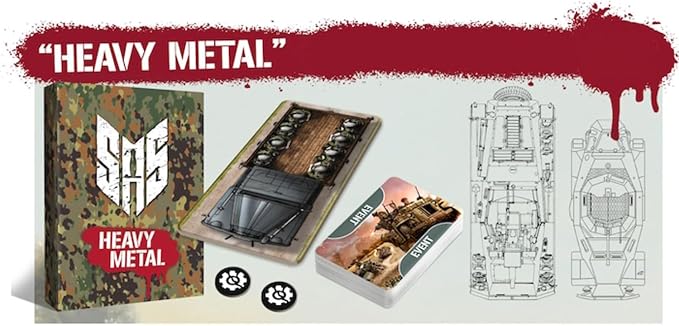 This expansion for SAS Rogue Regiment introduces new rules, a new mission and an all-new event deck to your game of Stealth And Shooting. The Heavy Metal is rolling and it’s your team’s job to stop it by any means necessary. Do you dare? Will you win?