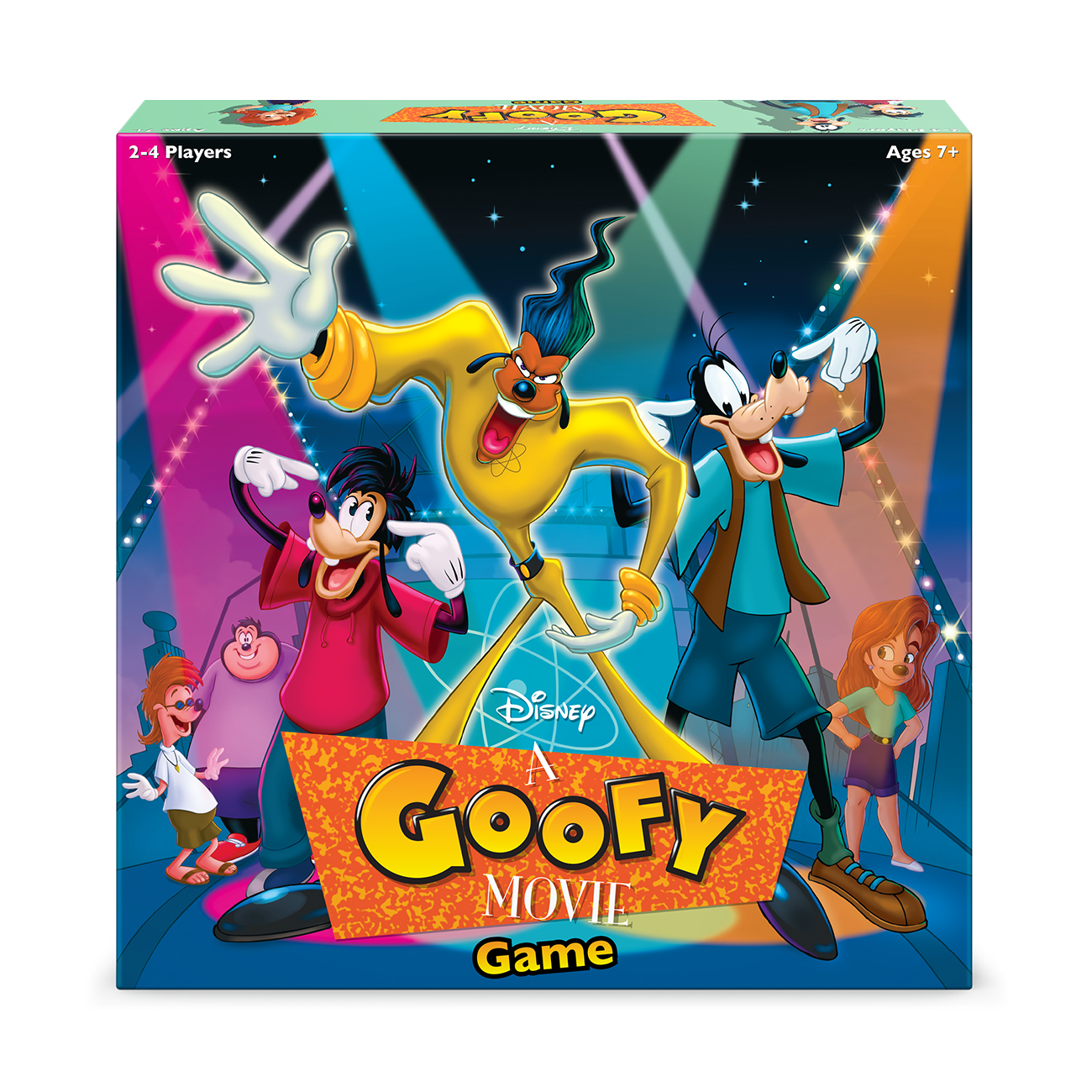 Global superstar Powerline is back on tour! Join Max and his friends as they hit the road in this adventure-filled race to the concert! Make your way across the map, collecting fun memories for your scrapbook. Then hurry to score the best seats by the time Powerline hits the stage! Play cards to collect memories and travel to new locations! Roll the die to see if Powerline reaches L.A. or Goofy takes you on a wacky detour Includes 6 detailed character figures. Travel across the road map game board to reach L.A. Roll the giant gold, sparkly die to see where Goofy and Powerline go! 90s visual design captures nostalgia for the film. Original card art depicts beloved locations and moments from the movie.