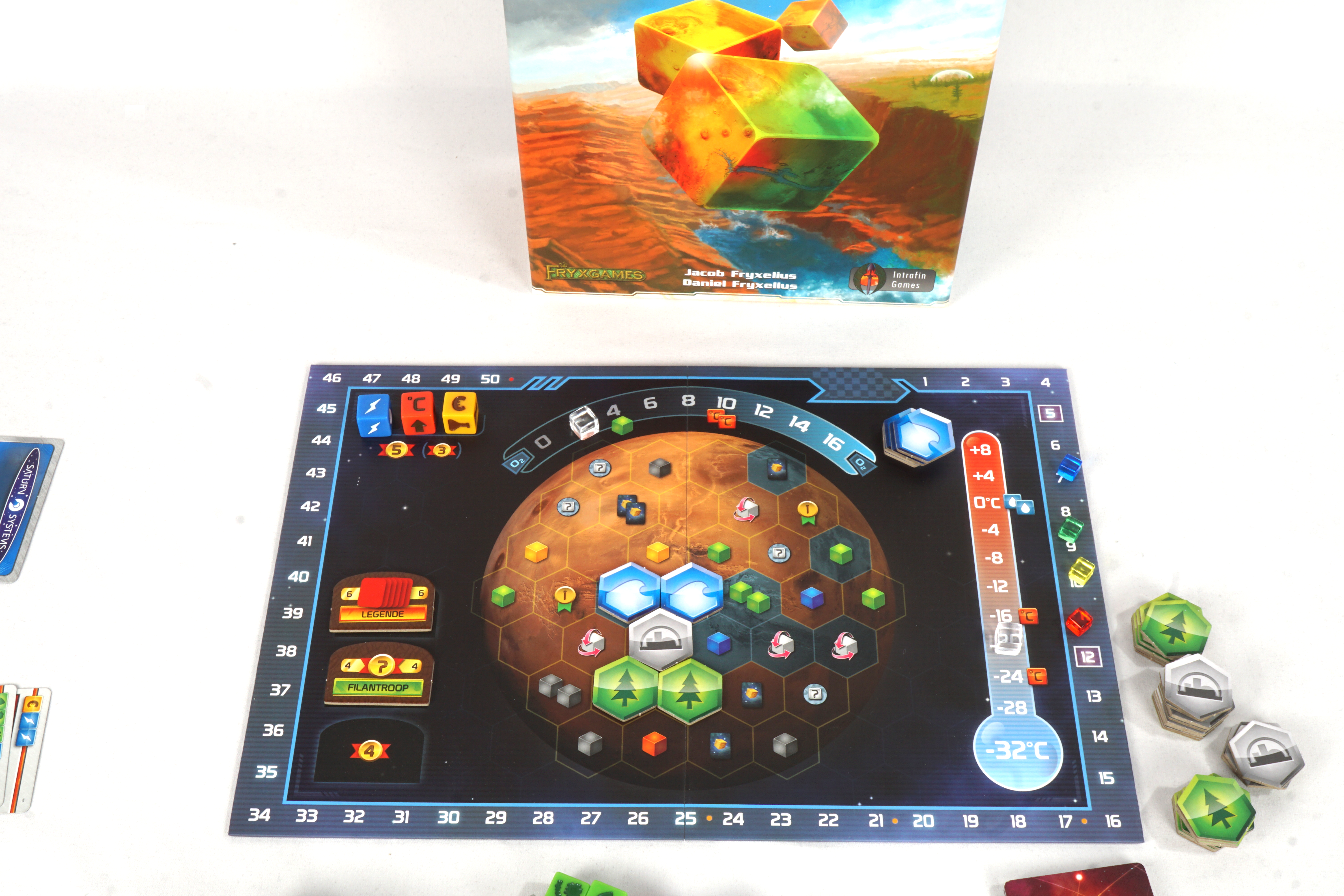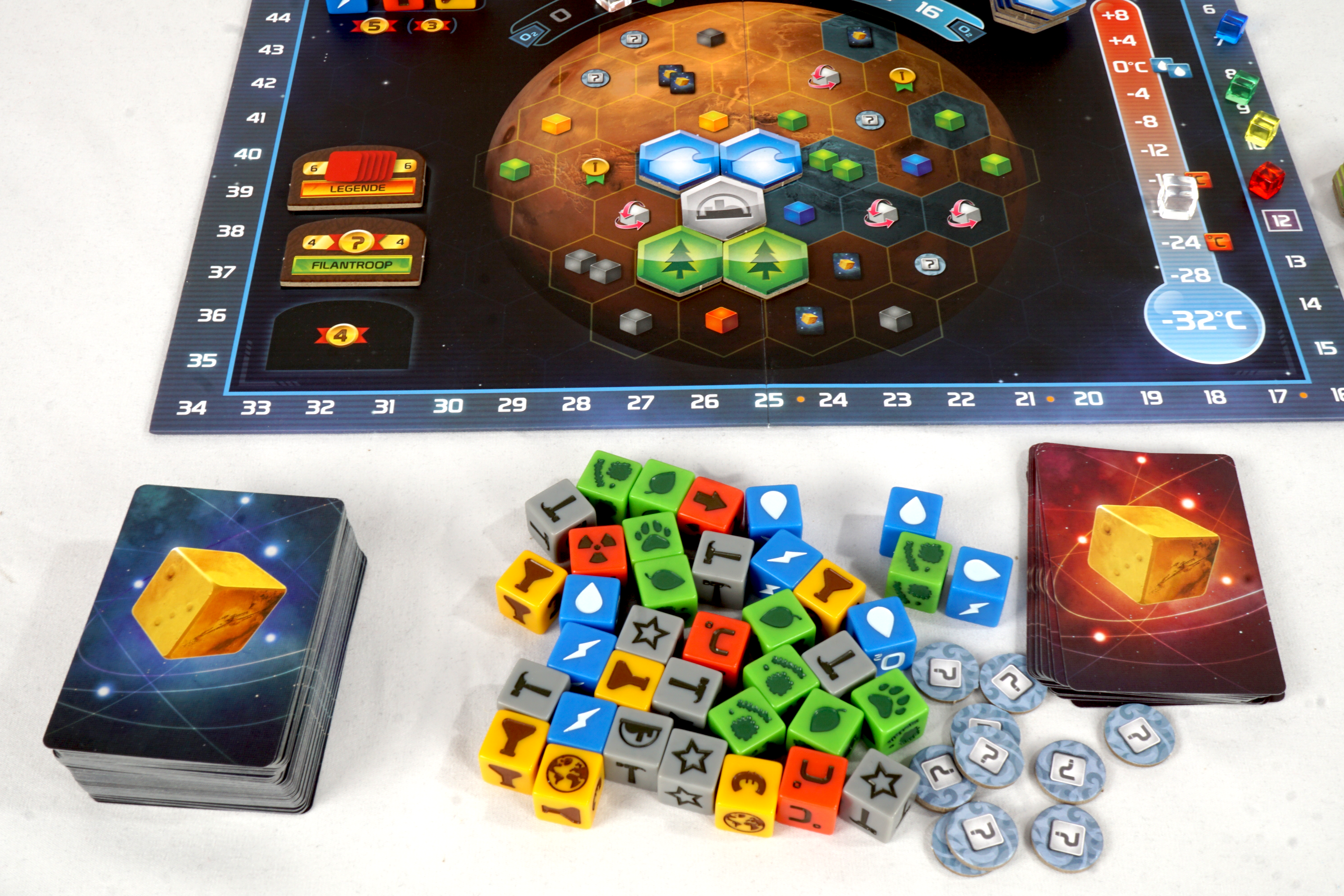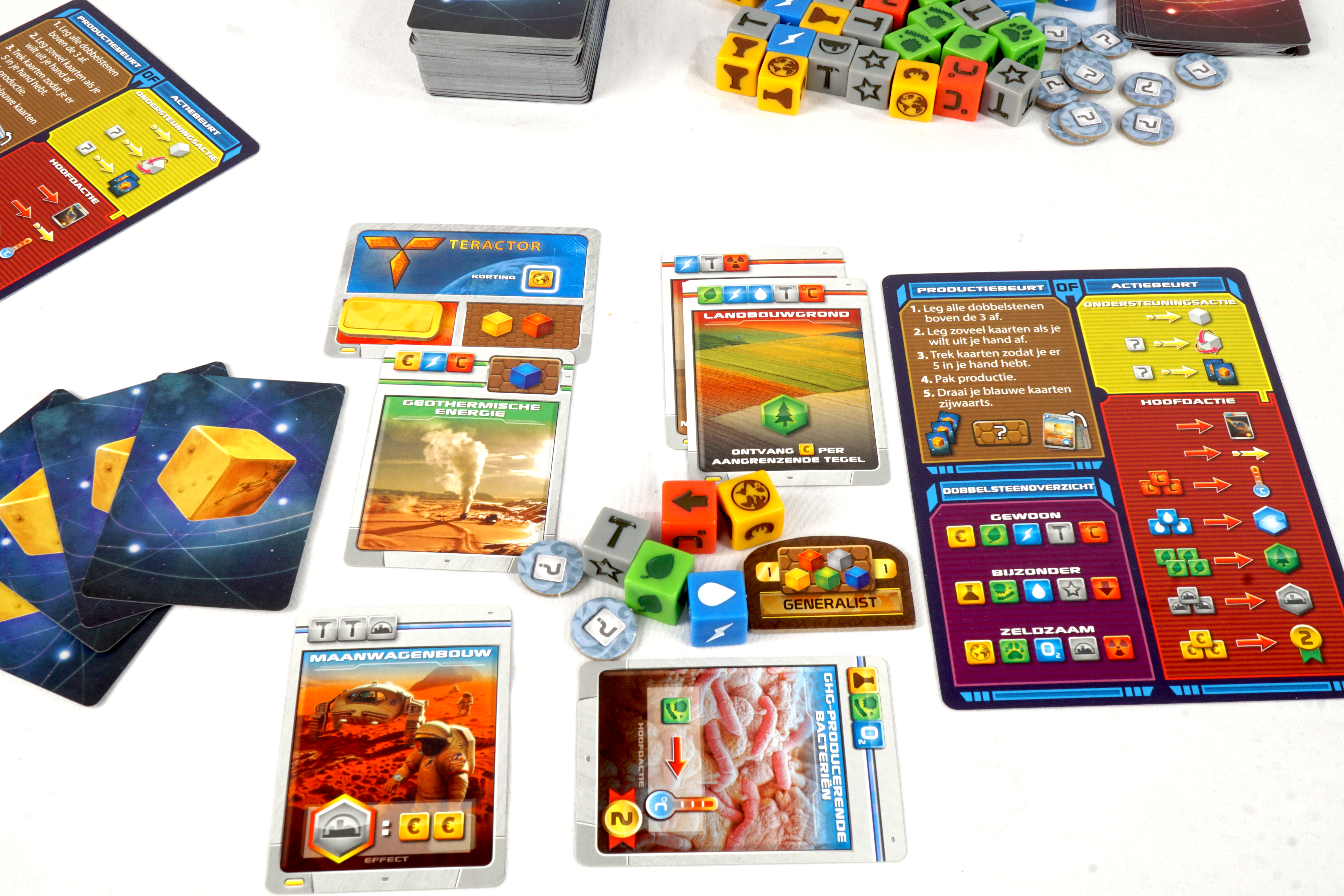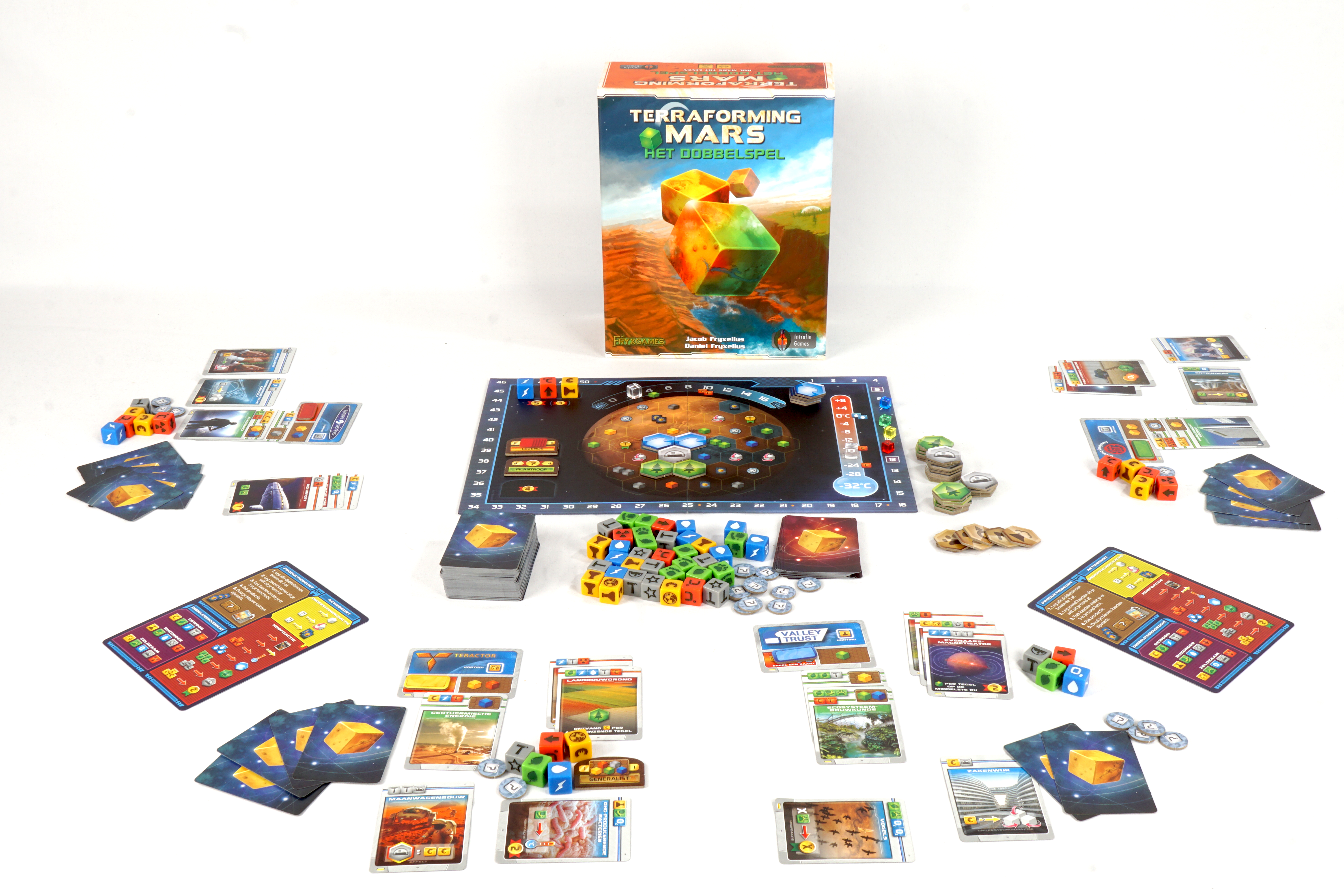 We zijn er eindelijk in geslaagd om kolonies op Mars te bouwen, maar nu staan we voor een nog veel grotere uitdaging: de planeet tot leven brengen en er een nieuw thuis voor de mensheid creëren! Zal jouw corporatie vooroplopen? TM: Het dobbelspel is gebaseerd op het bestverkochte strategiespel Terraforming Mars en combineert 6 speciale dobbelstenen met 159 unieke kaarten om zowel families als gevorderde spelers een snelle en eenvoudig te leren spelervaring te bieden...