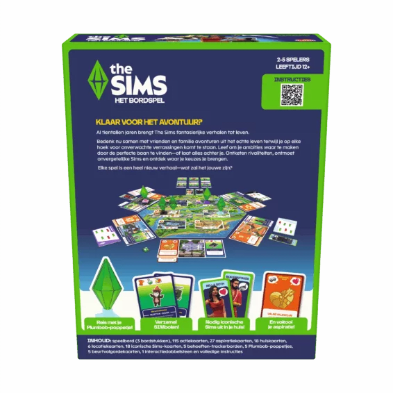 Het bekende online spel komt nu ook naar jouw keukentafel. De Sims is er nu ook in een bordspel variant. In dit spel moet jij het leven van jouw Sims karakter opbouwen. Maak contacten en voltooi je ambities om het spel te winnen. Dit te gekke bordspel brengt de wereld van de Sims ook naar de echte wereld.