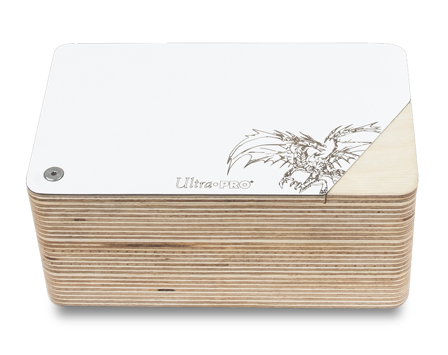 Handmade with premium wood. Holds 100 double sleeved cards in Ultra PRO Deck Protector sleeves. Thumb notch for easy access to cards. Holds two 20-sided dice. Features a built in laser-etched life counter and secure magnetic closure. (Cards, sleeves and dice not included)